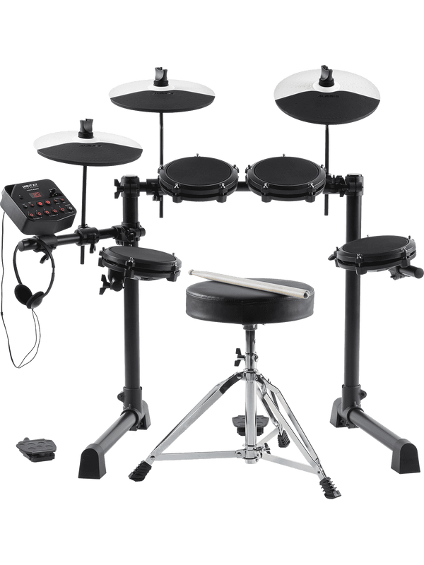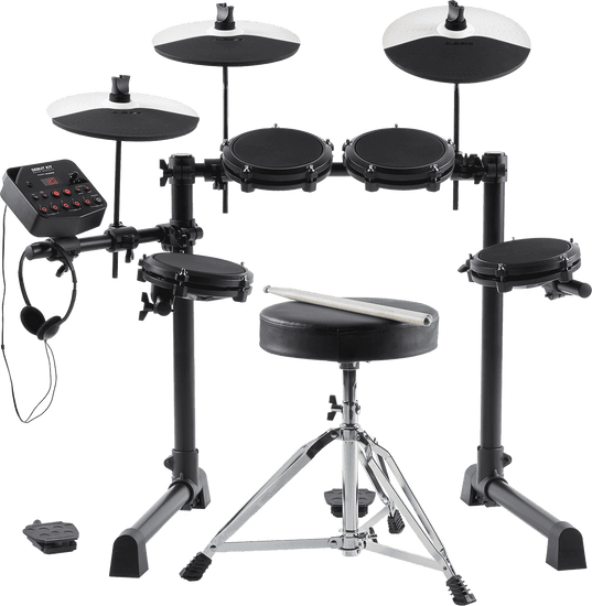 - Accessoires inclus : Siège, Pédale grosse caisse, Casque, Pédale hi-hat, Baguettes