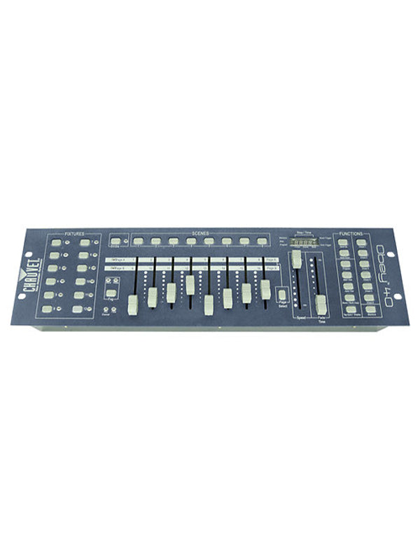 Console DMX universel qui permet le contrôle de 12 appareils composés chacun de 16 canaux et jusqu' 240 scènes programmables. Fonctionne en modes musical, MIDI, automatique ou manuel. Il dispose de 8 curseurs de canal universels, des boutons d'accs direct au scanner et aux scènes, et un cran LED facilitant la navigation dans les fonctions de commande et de menu.