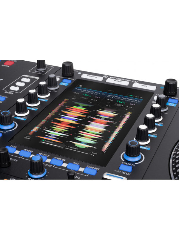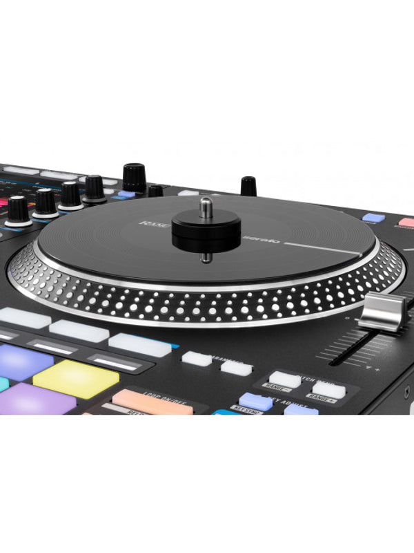 Le System One ne se contente pas d’être puissant : il restitue aussi des sensations de jeu dignes d’une véritable platine professionnelle. Ses deux plateaux motorisés en aluminium de 7,2 pouces à couple élevé offrent un contrôle ultra précis, complété par les faders Precision Feel à tension ajustable et le célèbre crossfader Mag Four, calibrable directement depuis l’écran tactile pour une réactivité optimale en scratch. Cet écran HD 7 pouces apporte une visibilité parfaite des formes d’onde RGB et un accès fluide aux informations essentielles du mix.