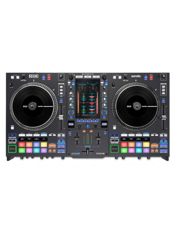 Conçu pour la scène, le System One place la réactivité au cœur de l’expérience DJ. Son écran tactile HD de 7" centralise la navigation dans vos playlists, la gestion des stems, des effets et l’éclairage SoundSwitch. Les 8 pads RGB par deck, accompagnés d’écrans OLED dédiés, offrent un retour visuel clair sur cues, samples, rolls et Stems. En complément, trois boutons Playlist Banks permettent d’accéder instantanément à vos playlists stratégiques, garantissant des enchaînements fluides même en situation live.